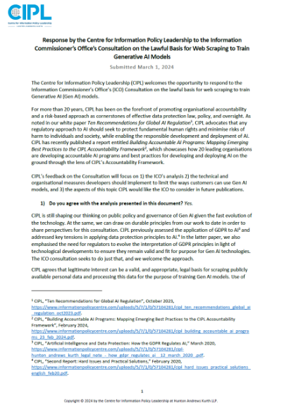 CIPL Response to ICO Consultation on the Lawful Basis for Web Scraping to Train Generative AI Models