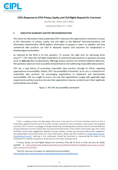 CIPL Response to NTIA Privacy, Equity and Civil Rights Request for Comment
