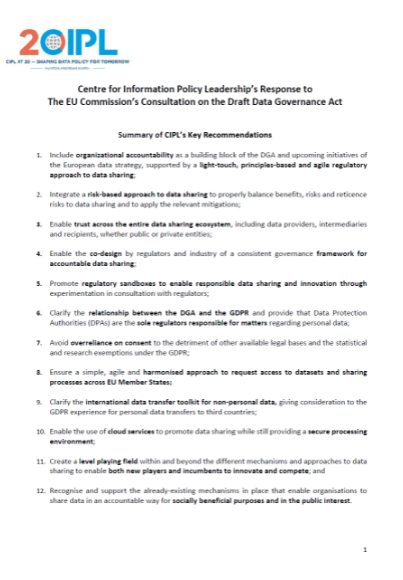 CIPL Response to the EU Commission’s Consultation on the Draft Data Governance Act