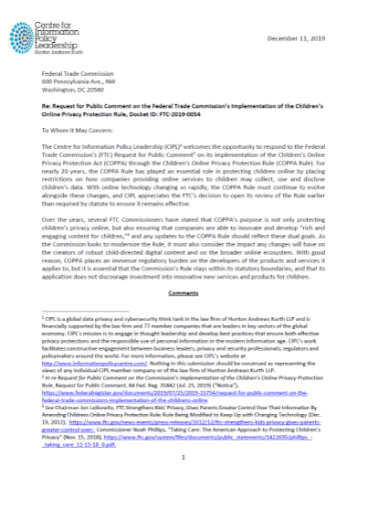 CIPL Response to the FTC’s Review of COPPA Rule