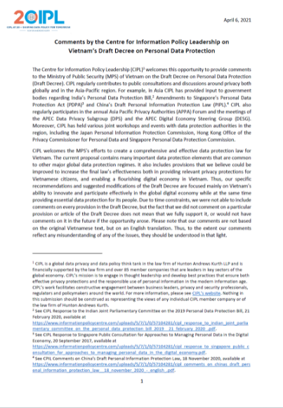 CIPL Response to the Ministry of Public Security of Vietnam’s Draft Decree on Personal Data Protection
