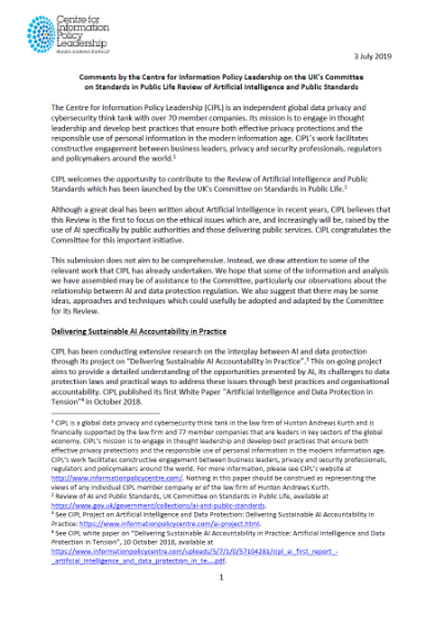 CIPL Submission to the Review of Artificial Intelligence and Public Standards by the UK’s Committee on Standards in Public Life