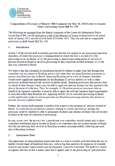 Compendium of Excerpts of Ministry Bill Comments for Letter to Senator Aloysio Nunes
