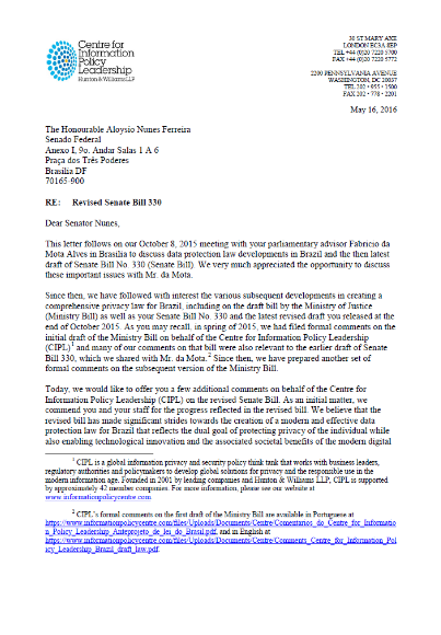 Letter to Senator Aloysio Nunes regarding revised Senate Bill 330