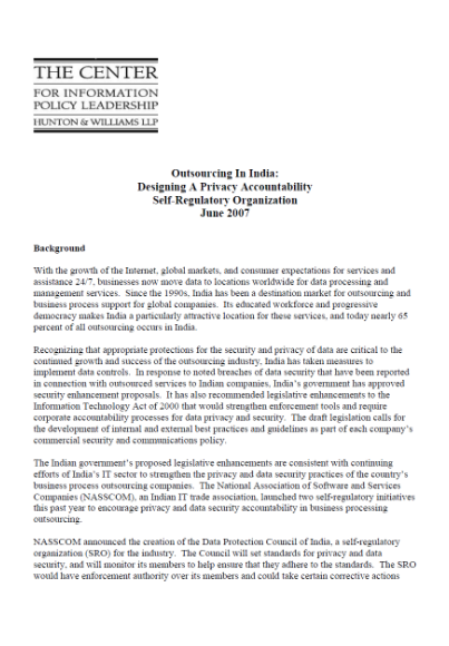 Outsourcing in India: Designing A Privacy Accountability Self-Regulatory Organization